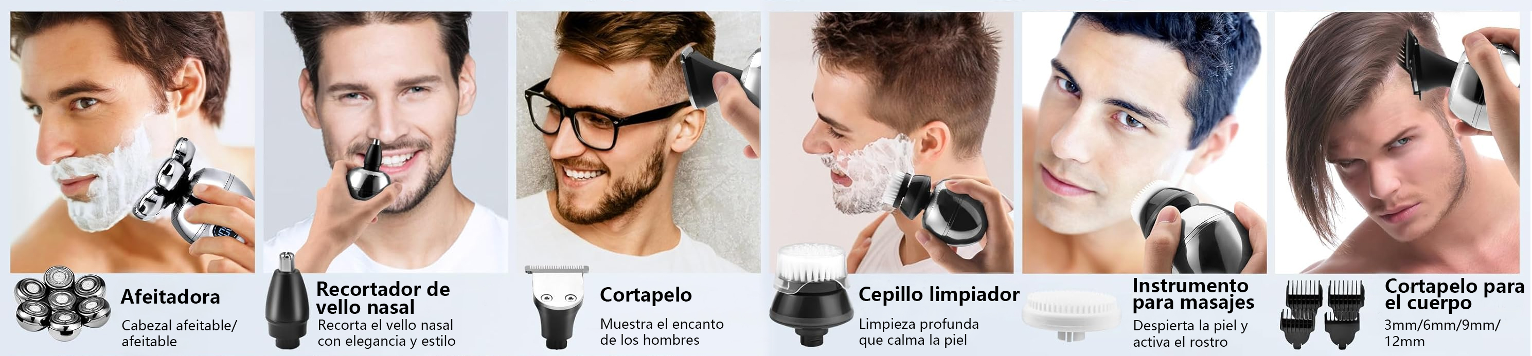 - Accesorios Multifuncionales – Recorta el vello nasal, da estilo al cabello y masajea la piel con un solo dispositivo.