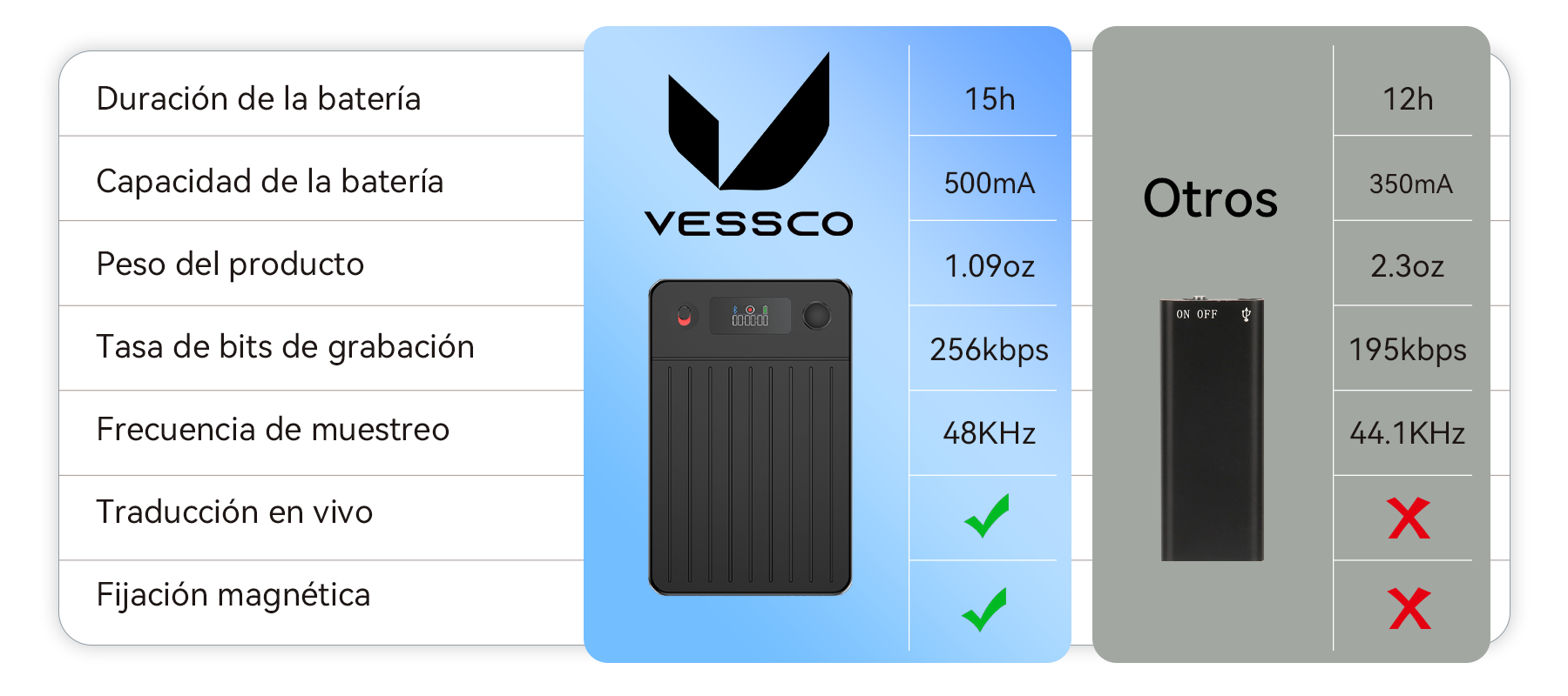 Nació el Vassco AI Smart Voice Recorder. Cuenta con un potente motor de IA para la transcripción en tiempo real y el resumen inteligente, y su cuerpo ultrafino incluye tecnología de cancelación de ruido por IA, lo que garantiza una calidad de audio impecable. Esta es la promesa central de Vassco: liberar tu mente y dejar que te concentres en lo que realmente importa.